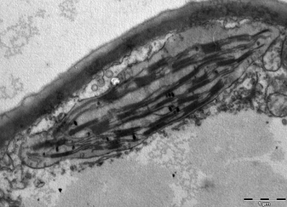 The chloroplast is enclosed by an outer membrane and an inner membrane, with an intermembrane space between them. Within the stroma (which is analogous to the matrix of mitochondion) another membrane enclosed space exists in the form of stacked disks we call gramum. These stacks forum the thylakoid. The space within the membrane is called the thylakoid lumen.